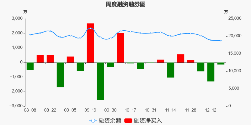 西部建设本周(2025/12/15-2025/12/19)累计涨幅达0.49%,截至12月19日最新股价报收6.11元。从增量上来看,12月15日至12月18日融资买入交易规模1706.58万元,融资偿还规模1845.04万元,期内融资净偿还138.46万元。从存量上来看,截止12月21日,西部建设融资融券余额1.89亿元,其中融资余额规模1.87亿元,融券余额规模118.23万元。