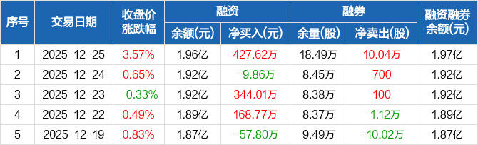 西部建设:融资净买入427.62万元,融资余额1.96亿元(12-25)