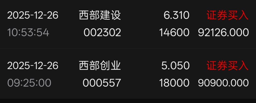 $西部建设(SZ002302)$ 那些喜欢说二选一总选错的,来,你这么干。两个都买、各买一半,下一个交易日看情况去弱留强。