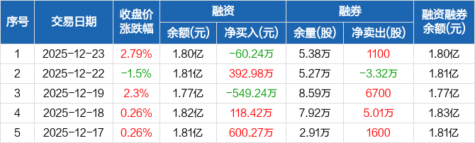 美盈森:融资净偿还60.24万元,融资余额1.8亿元(12-23)