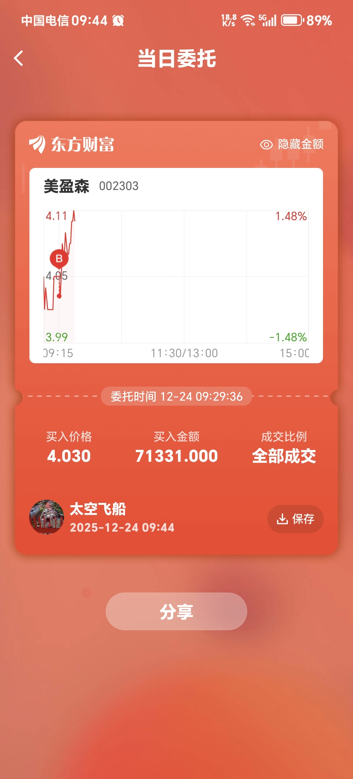 昨天买了24500股今天又加仓17700股