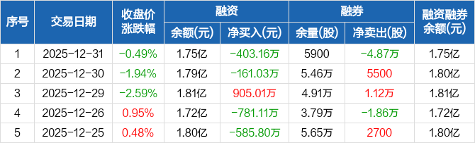 美盈森:融资净偿还403.16万元,融资余额1.75亿元(12-31)