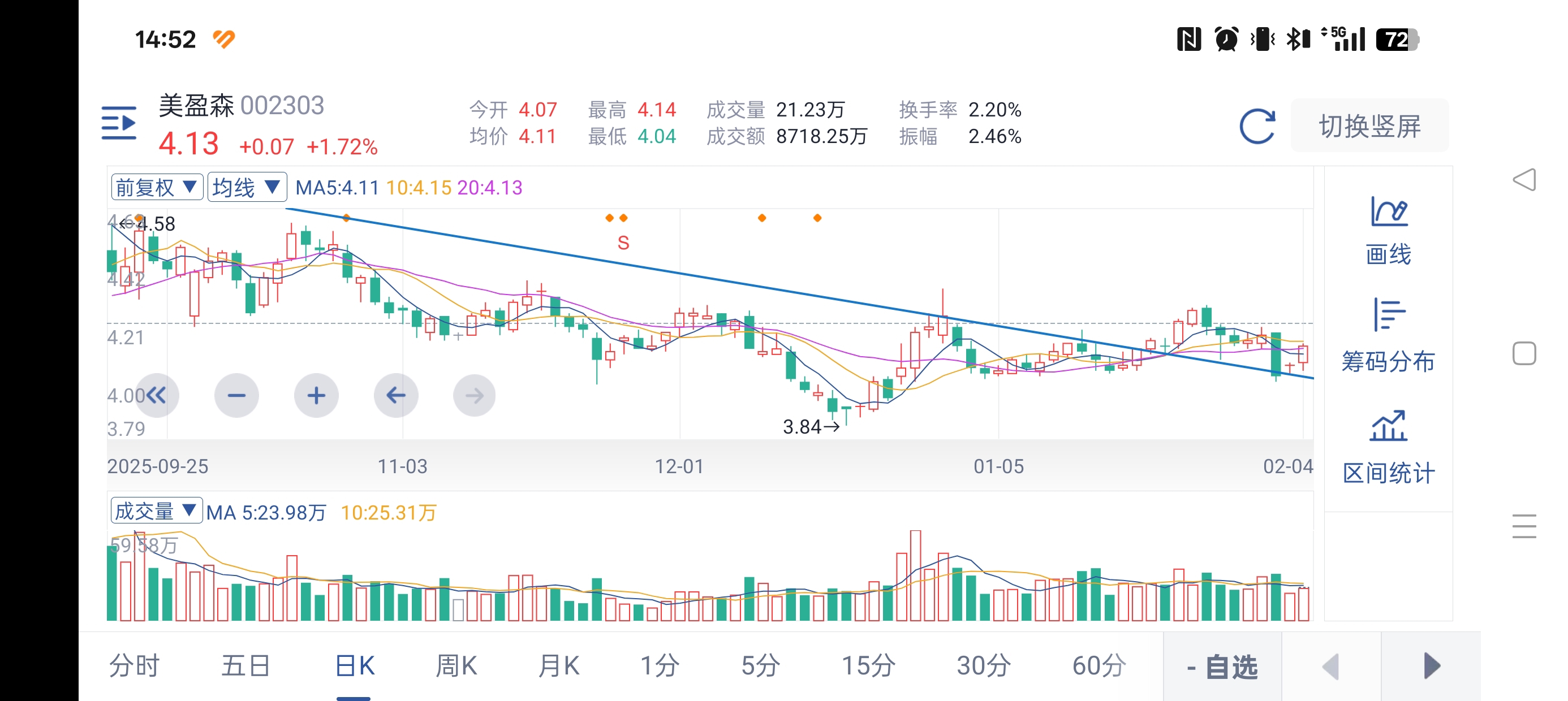$美盈森(SZ002303)$ 此线表明,下跌趋势已经扭转。