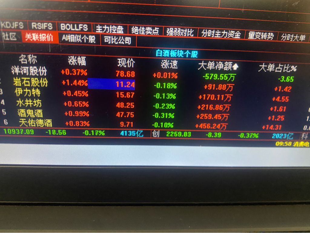 $洋河股份(SZ002304)$ 所有白酒就他是资金流出的,连亏损的都不如