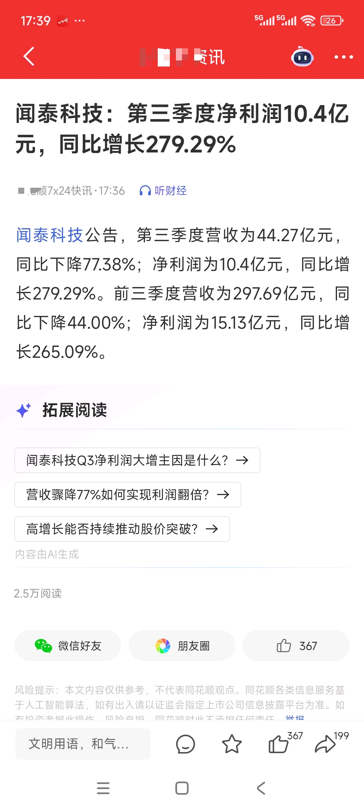 闻泰赚钱,洋河花,,业绩超出的预期,我以为第三季度利润超4亿就很不错了,,,希望