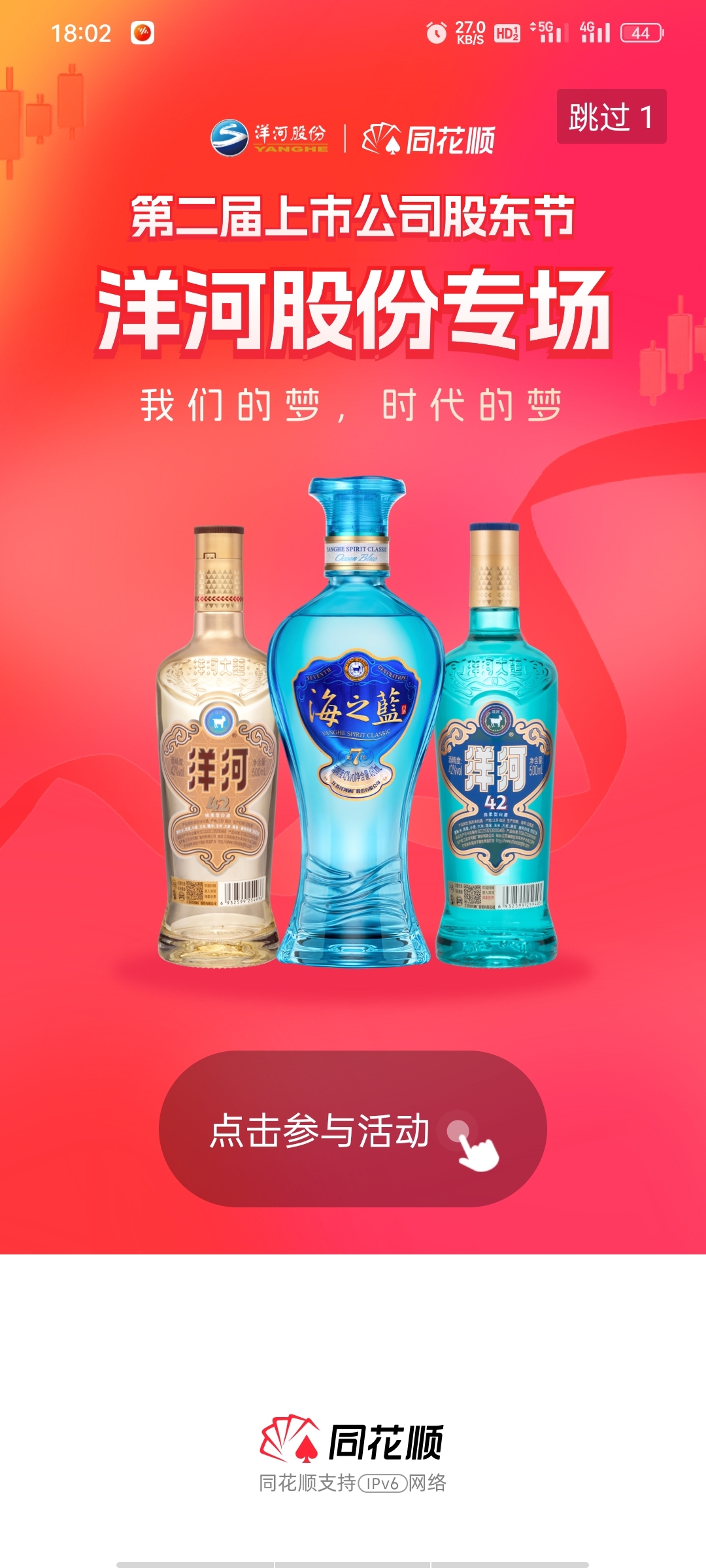 $洋河股份(SZ002304)$ 这货打广告,都打到同花顺了。