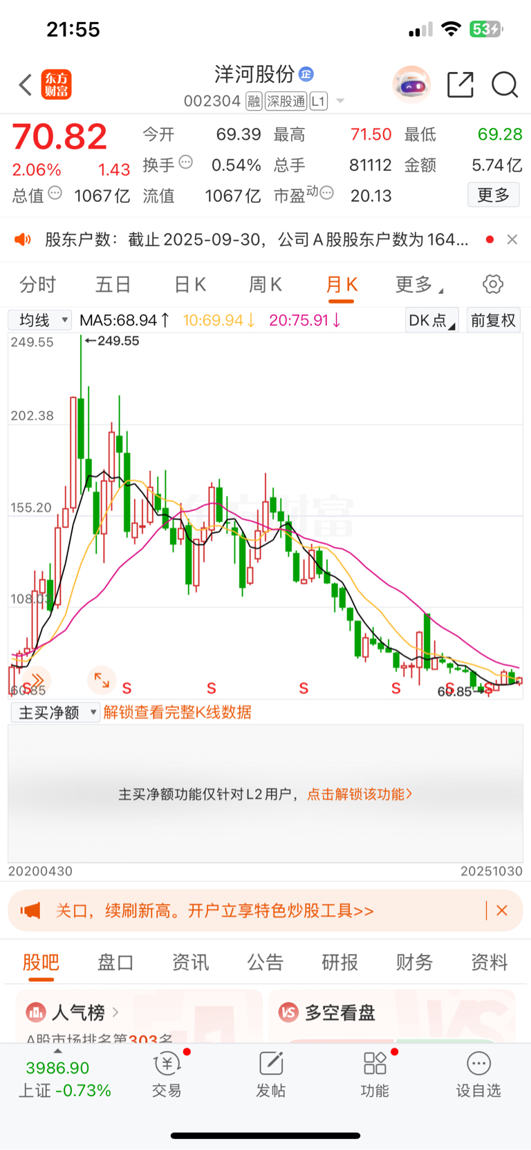 $洋河股份(SZ002304)$ 大家担心什么?K线不是已经告诉过大家了吗?这个总是最真实的代表吧!不需要过多的言语吧!