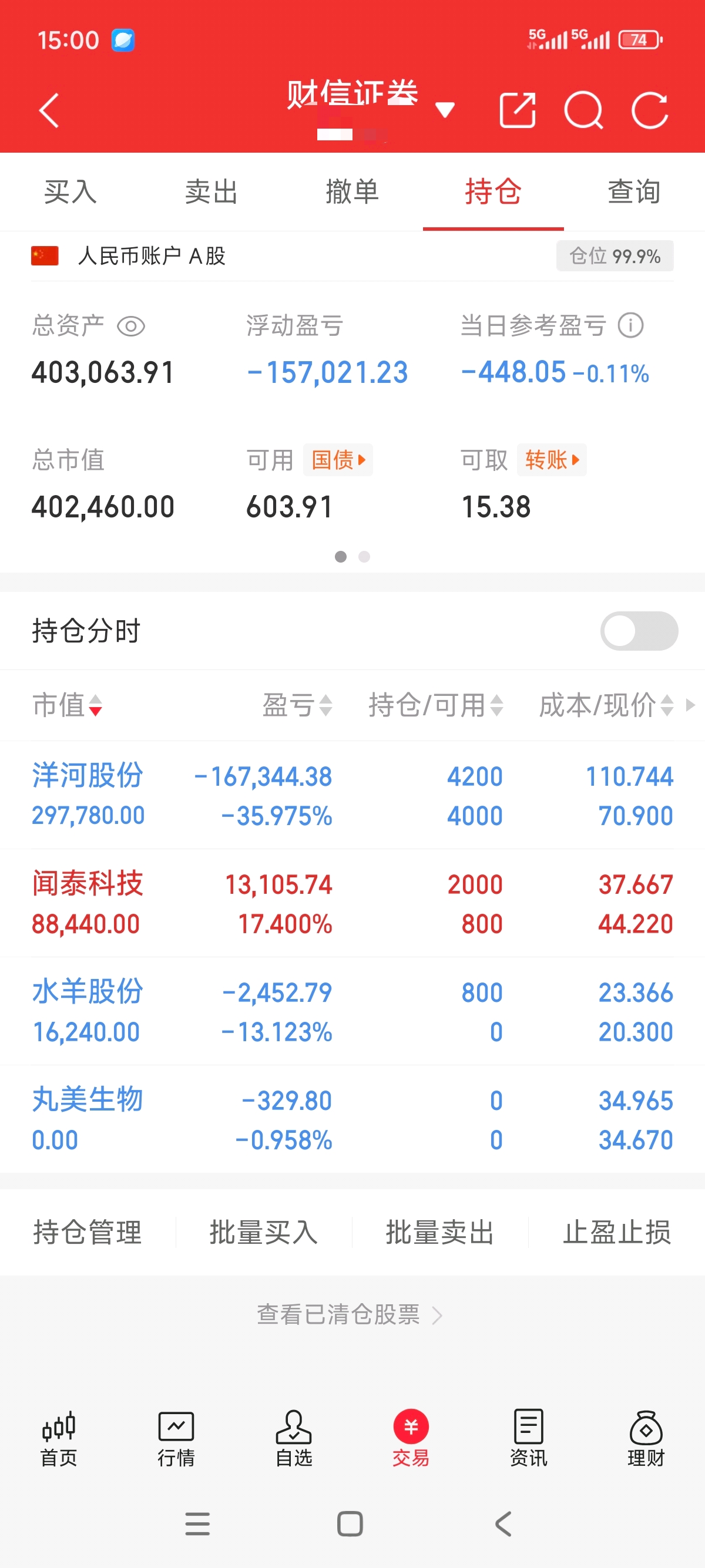 $洋河股份(SZ002304)$ $闻泰科技(SH600745)$ 洋河赚钱,闻泰花,,今天平均45进800股闻泰,博弈明天补涨吧,,不然gg了