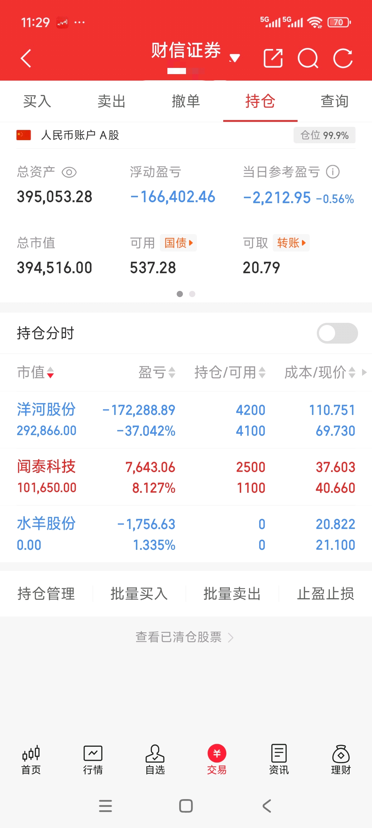 $洋河股份(SZ002304)$ $闻泰科技(SH600745)$ 五天,扣我一万,天天绿,韭菜这样割,,受不了了,,只能怪我太贪心,闻泰获利15000不跑,,现在吐出来一半,,仓位加重,,越跌越加,,越加越套