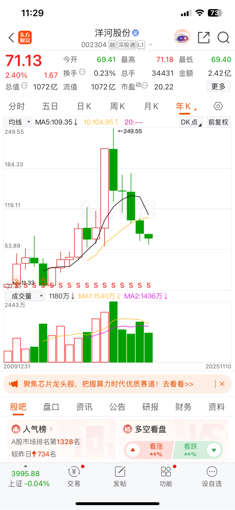 $洋河股份(SZ002304)$ 连续单边下跌了5年了,这行情你都不拉?出货?去看看别的白酒你是白酒中的垃圾