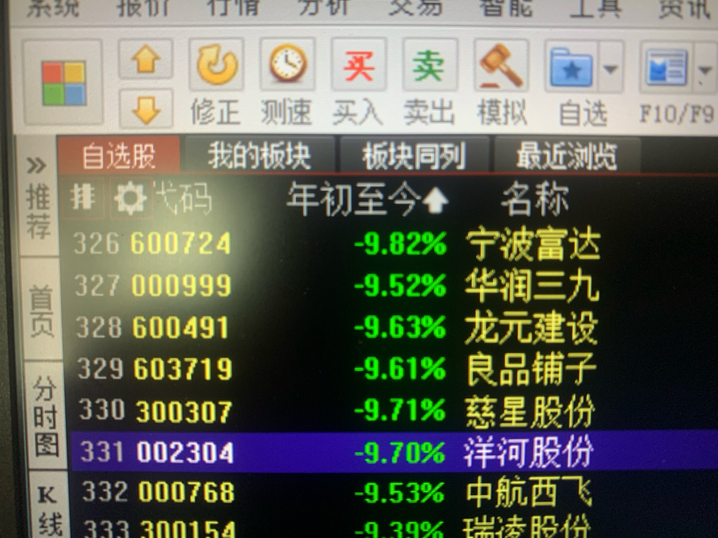 5千多个股票,洋河股份今年跌幅度前300多名!呵呵