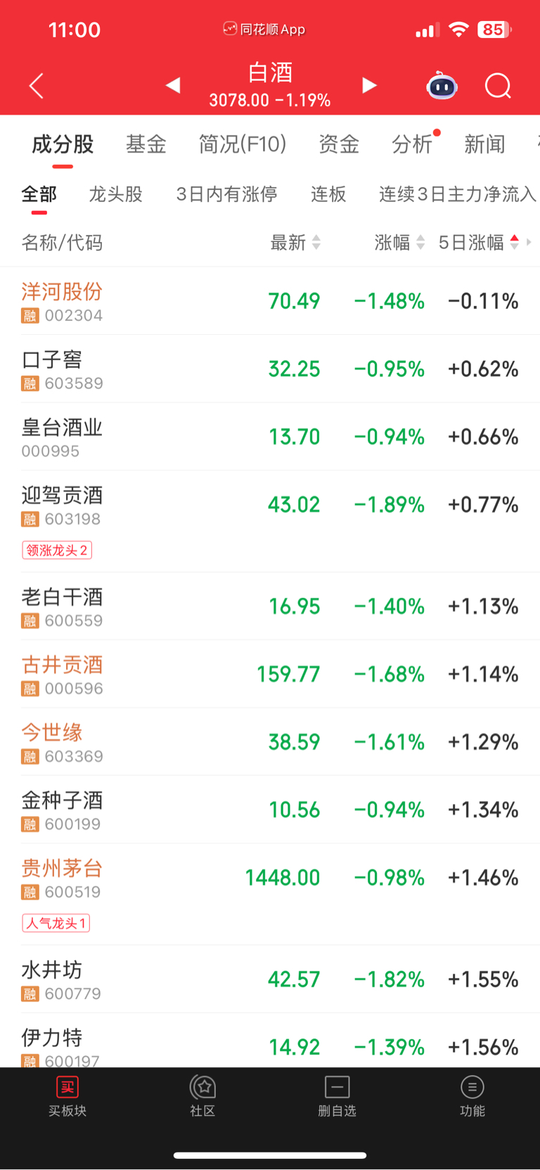 $洋河股份(SZ002304)$ 5日涨幅跌幅第一!