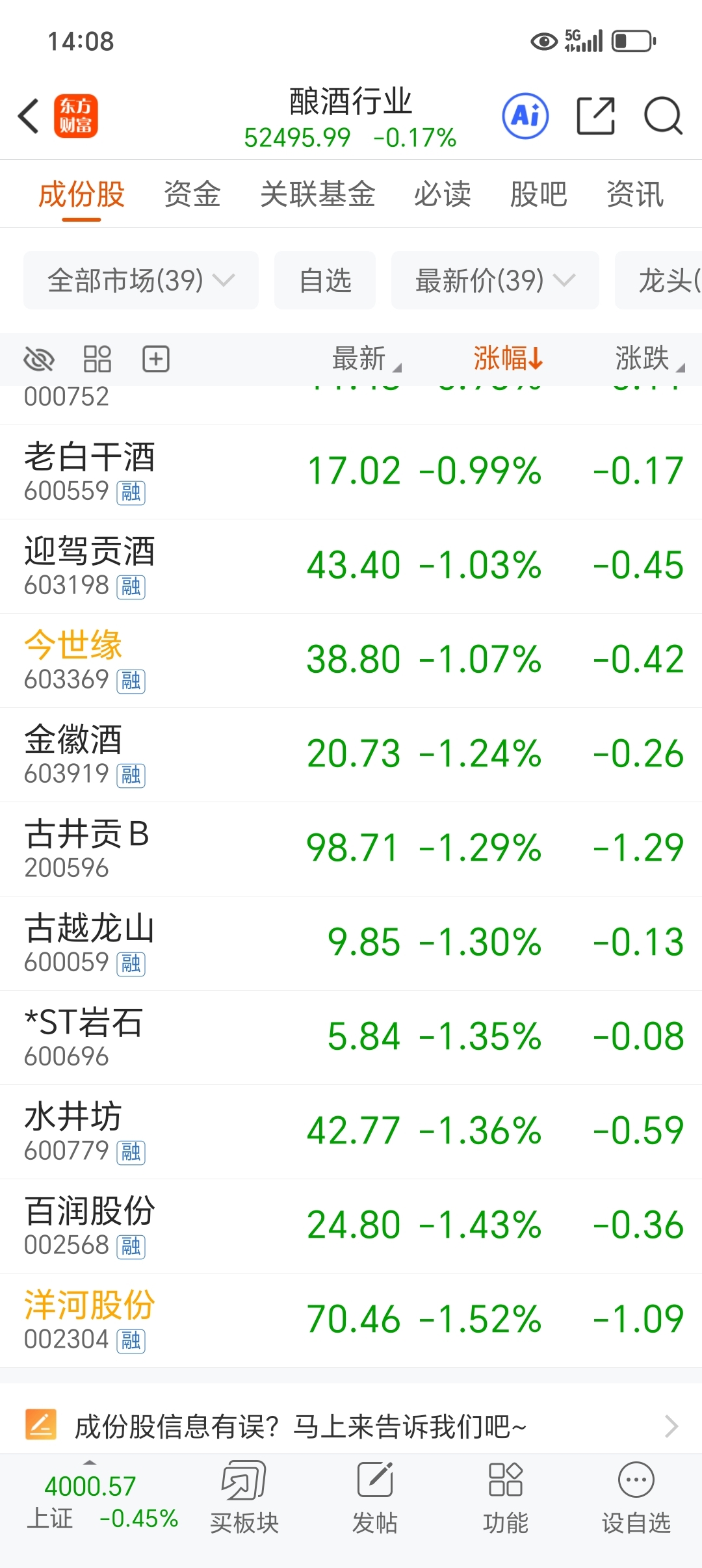 你对的起门头摆着的白酒吗?股价搞得这么惨,谁还去买咱家酒呢