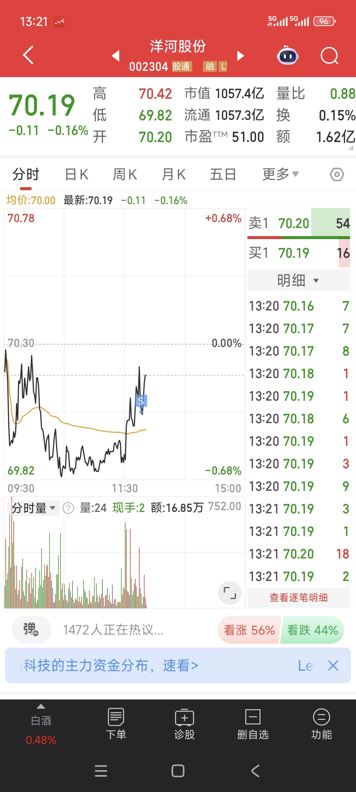 洋河得看我割了一部分,才会起来,,,我要是清仓洋河,,或许立马涨停给你们看