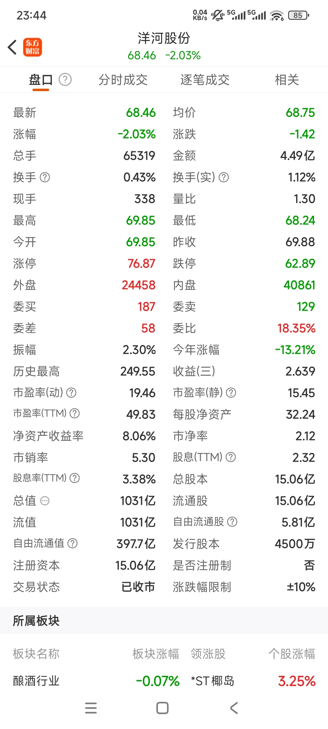 $洋河股份(SZ002304)$ 股息率只有3点几啦%啦