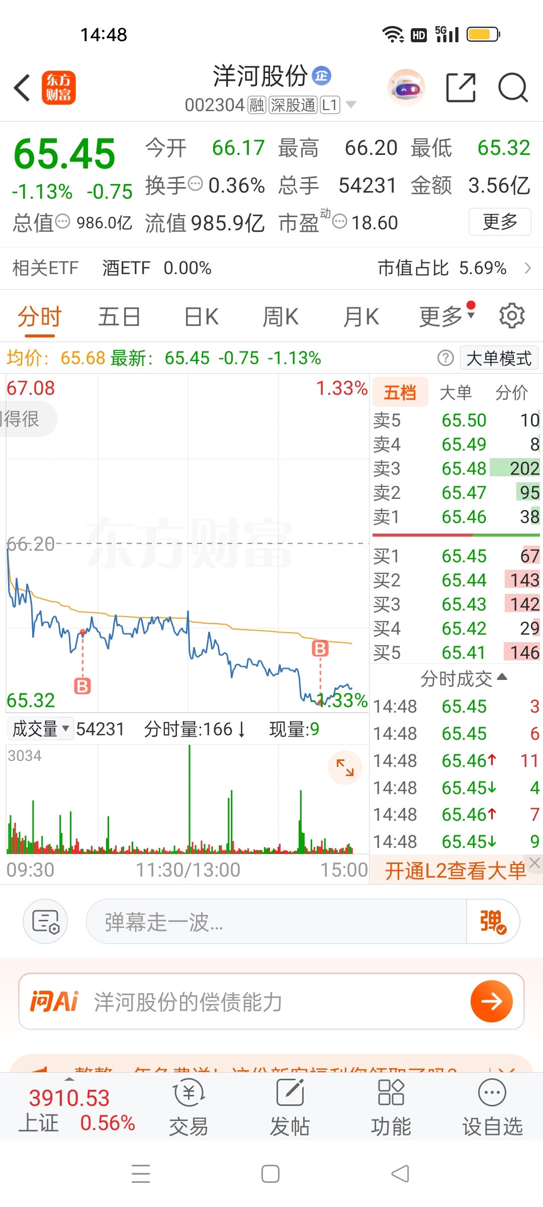 $洋河股份(SZ002304)$ 这样买能涨吗?输不多的,赶紧远点。