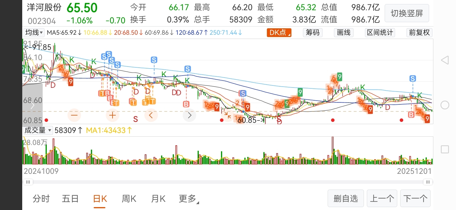 洋河每次赚个菜钱第二天就跑,回头看每一次买入都是错误。