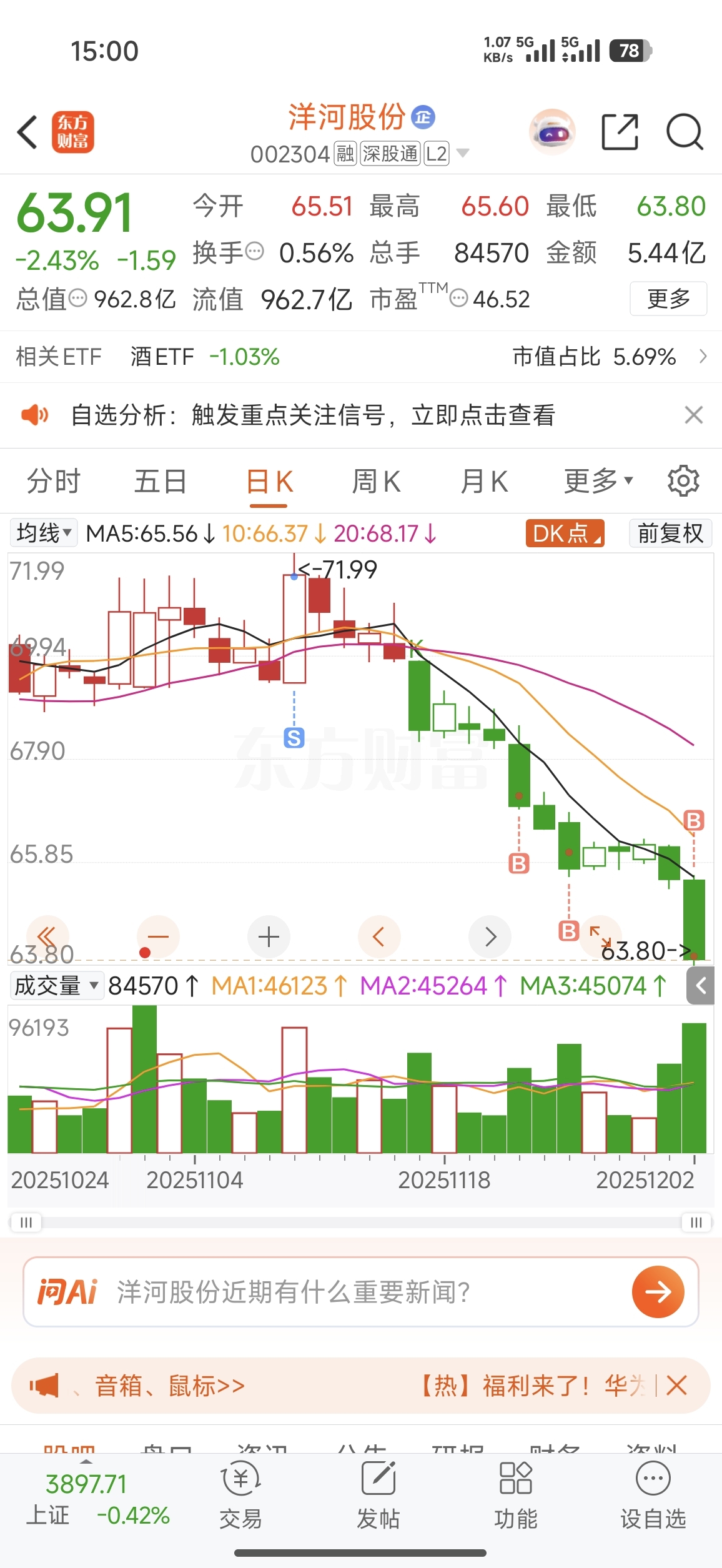 $洋河股份(SZ002304)$ 主打一个高卖低买