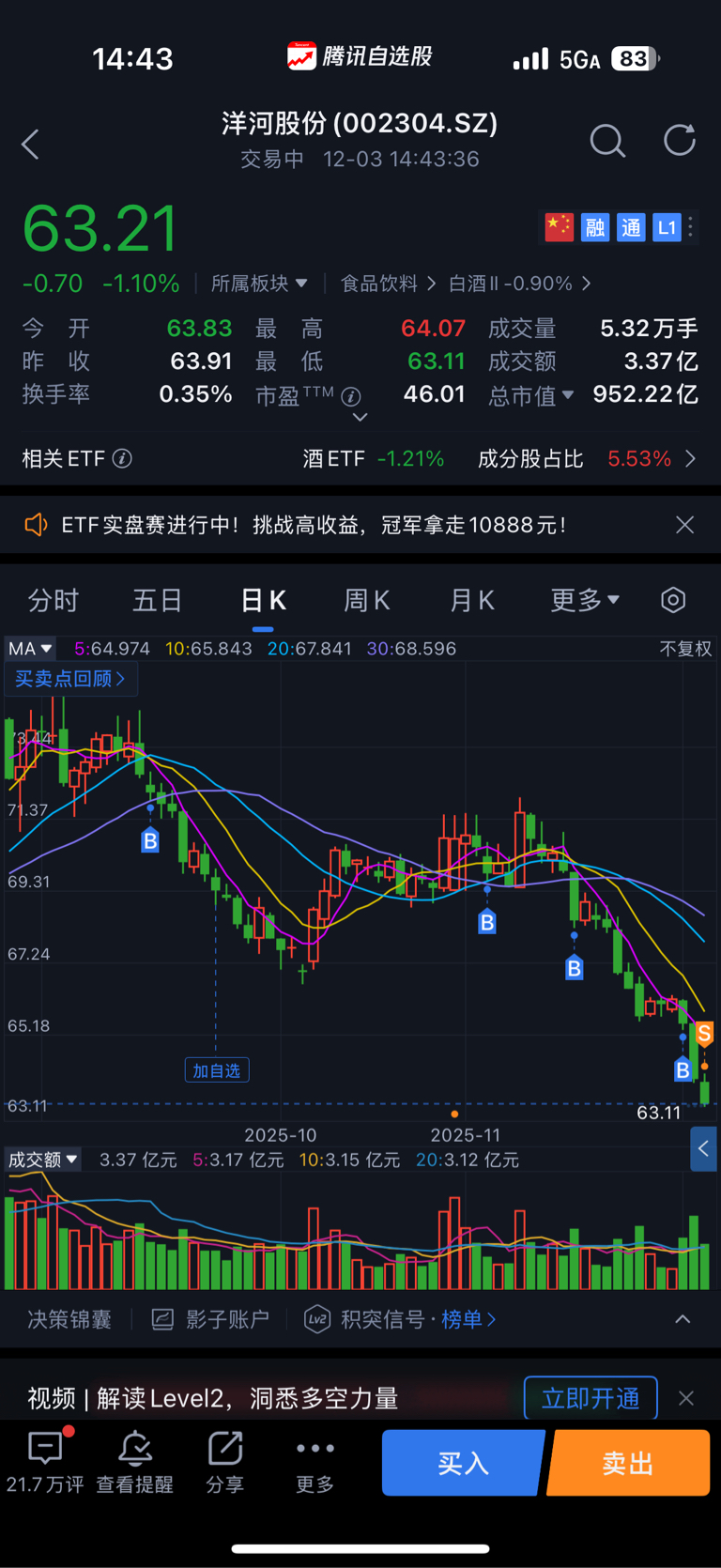 割了本来觉得洋河酒还是次高端的白酒品牌一直补没想到啊吧