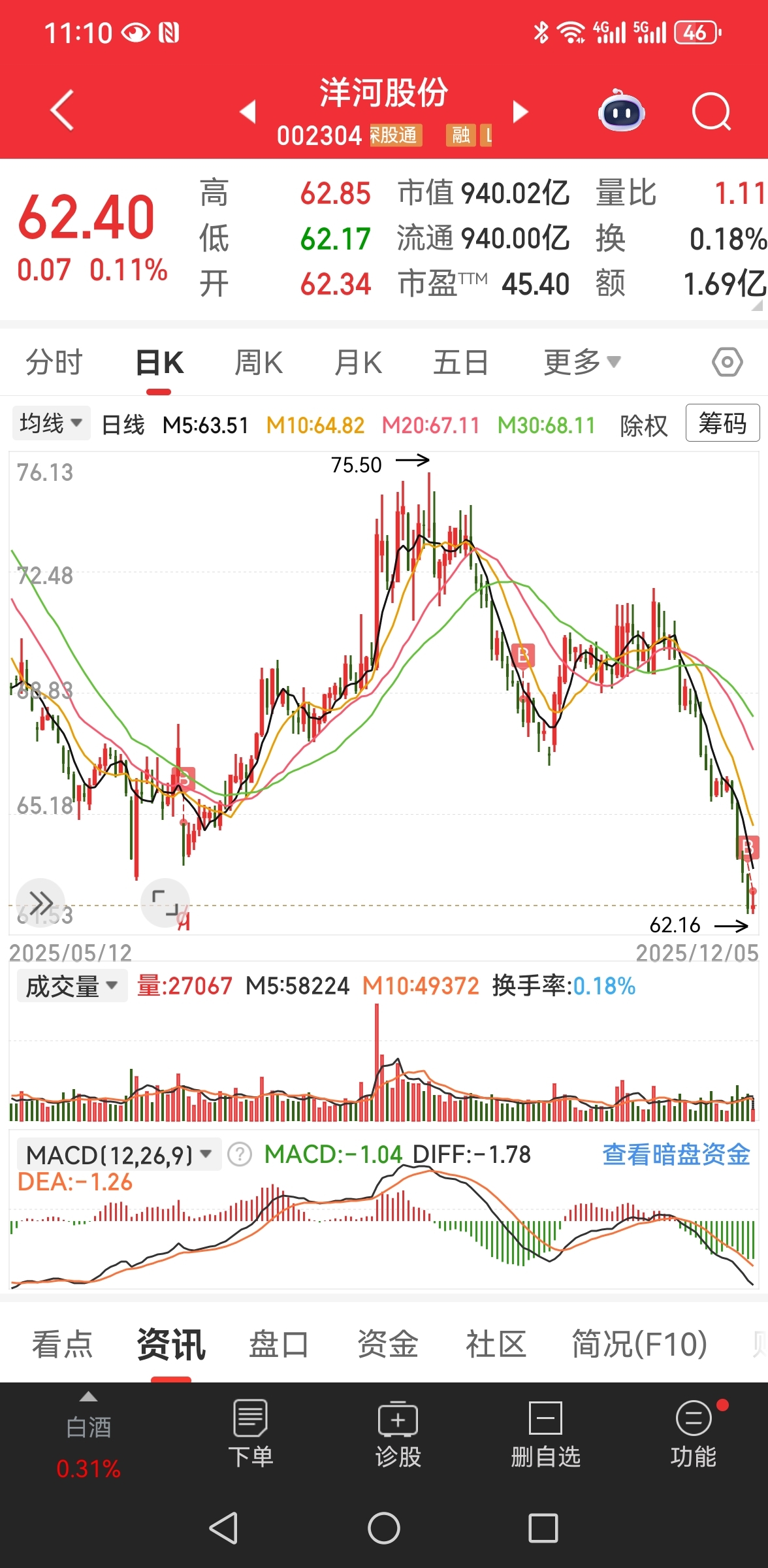 $洋河股份(SZ002304)$ 一直都默默支持从不放弃,小散户不容易,别砸了,我们也要养家糊口,不奢求大富大贵,只希望跑赢银行。上有老下有小要养