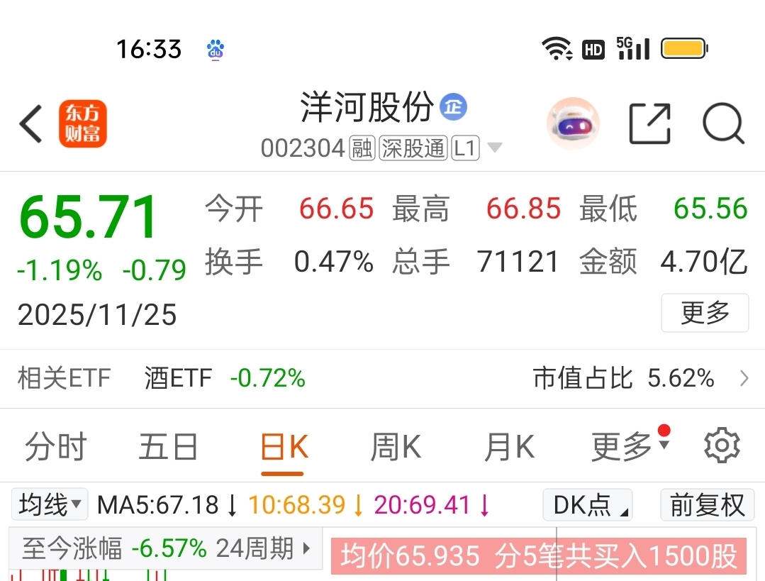 $洋河股份(SZ002304)$ 已亏6个多点,套住了,外面的看到就不要再进了,你们这个位置使劲的买,这不是救我,这是害我啊。