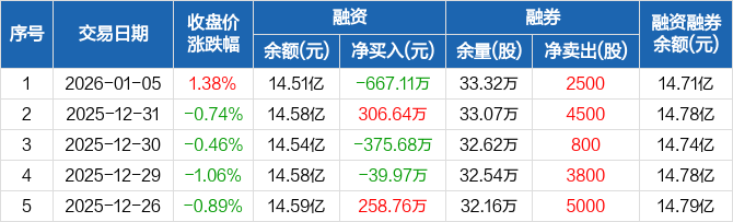 洋河股份:融资净偿还667.11万元,融资余额14.51亿元(01-05)