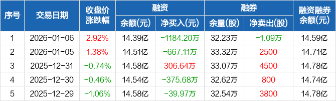洋河股份:融资净偿还1184.2万元,融资余额14.39亿元(01-06)