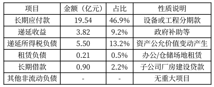 关键发现: - 有息长期负债仅 0.9 亿元,几乎可忽略不计 - 主要为经营性长期应付款和递延收益