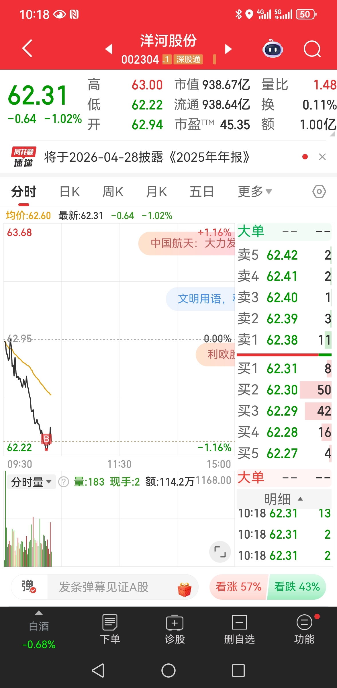 $洋河股份(SZ002304)$ 大盘4000,你却在2600
