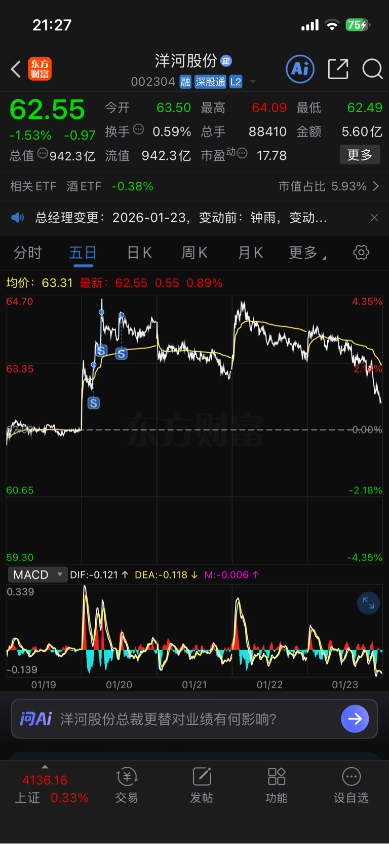 $洋河股份(SZ002304)$ 业绩和预想的差不多,但是没想到会改变分红政策;其实也是好事,只有在分红上达不到理想的收益时,股东们才会在股价上做文章,现在就是把股价再腰斩,分红也达不到以前的收益率了。周一开始,小跌小买,大跌大买。