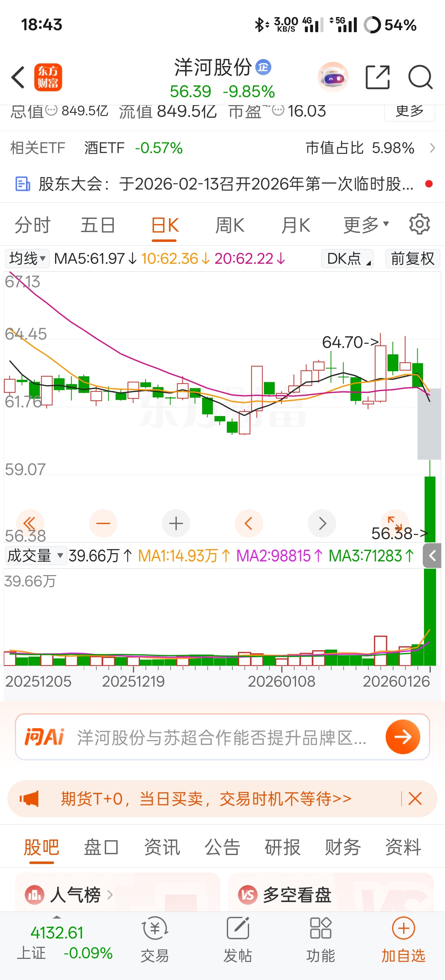 $洋河股份(SZ002304)$ 买的曲面屏,有点看不清今天的行情,这是穿地板了吗