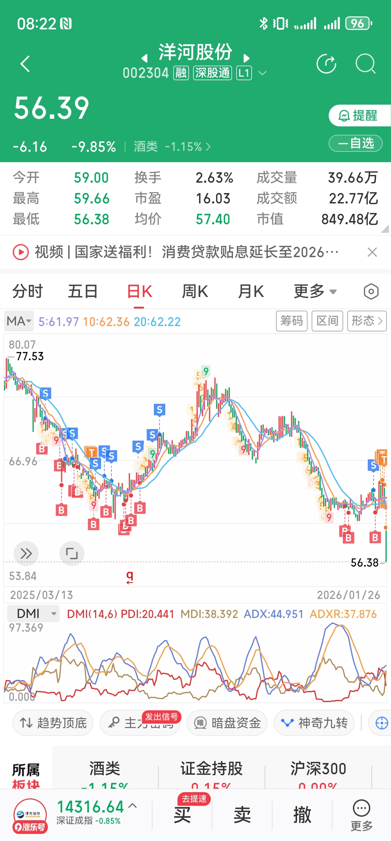 $洋河股份(SZ002304)$ 八十买割肉 七十买割肉 六十买还割肉 我等你到五十