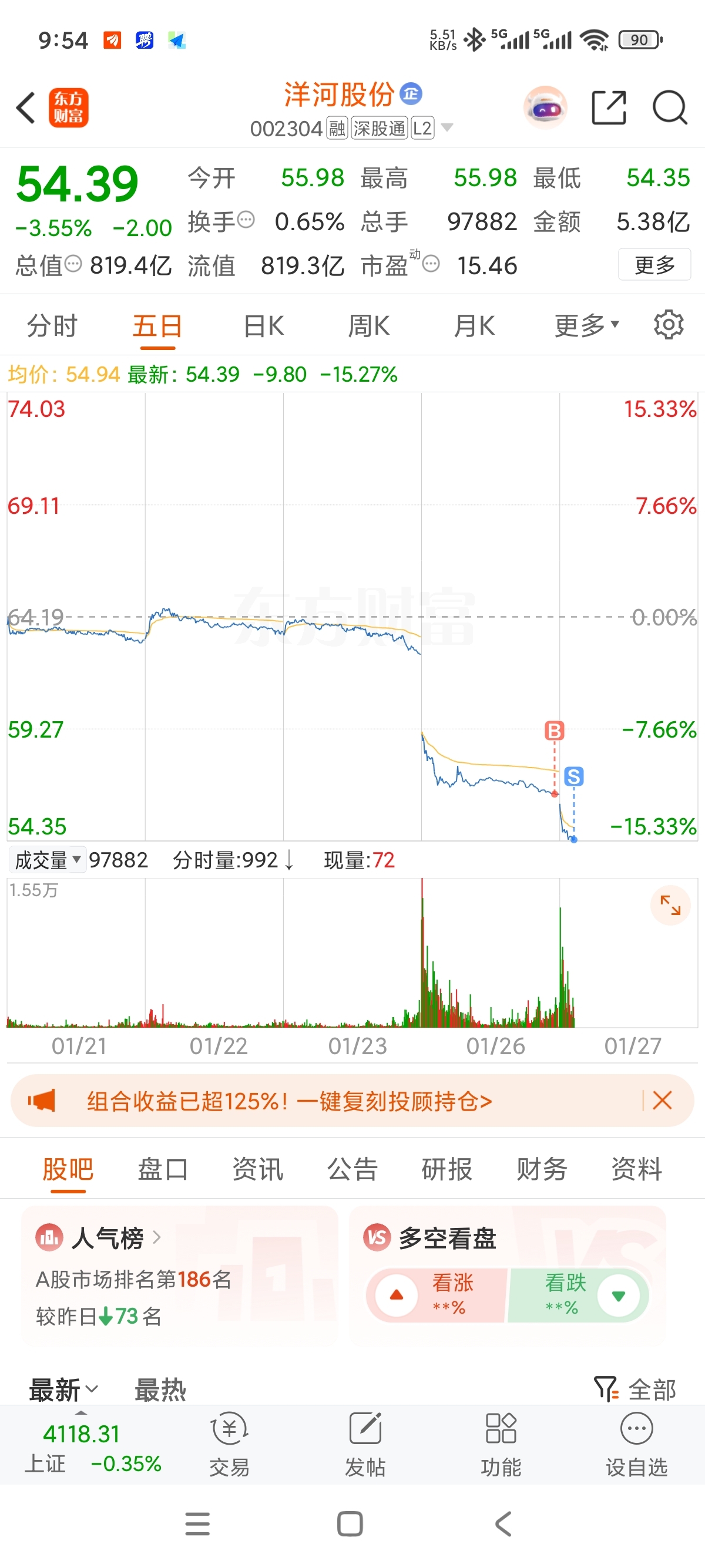 $洋河股份(SZ002304)$ 愿赌服输,及时止损。