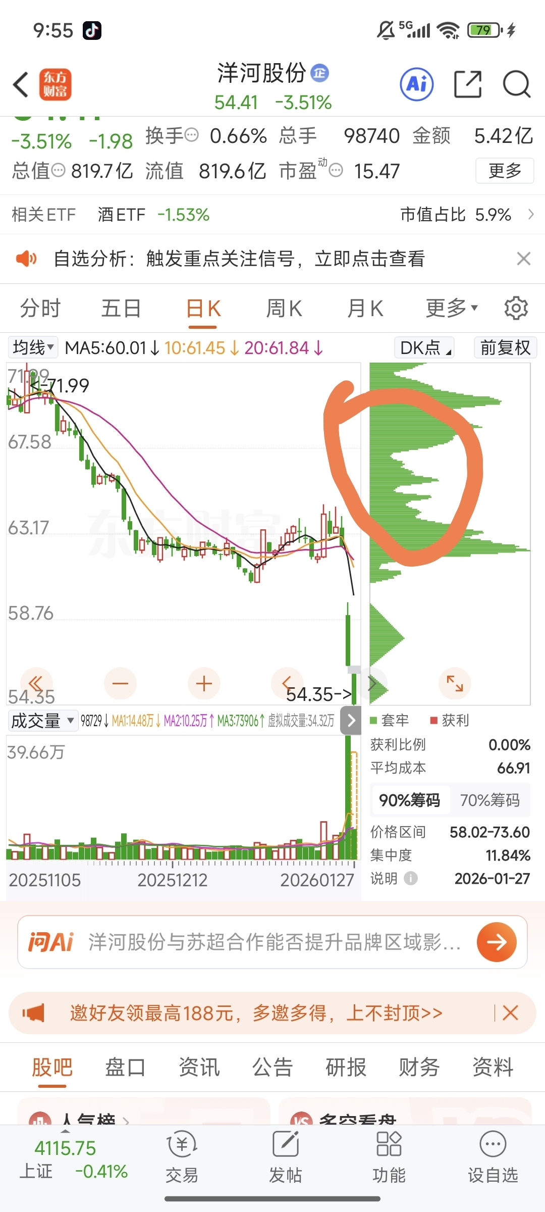 $洋河股份(SZ002304)$ 上方筹码都震出去了,才回涨
