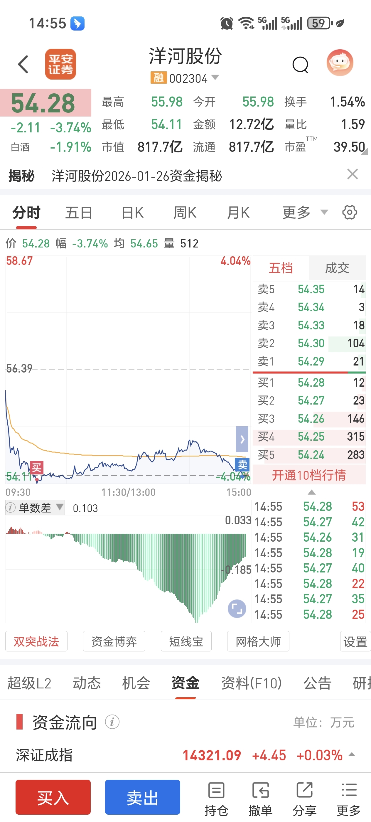$洋河股份(SZ002304)$ 昨天进的十手,全清了,垂直下跌的,太可怕,感觉至少先破52,后面不知道40能不能看得到