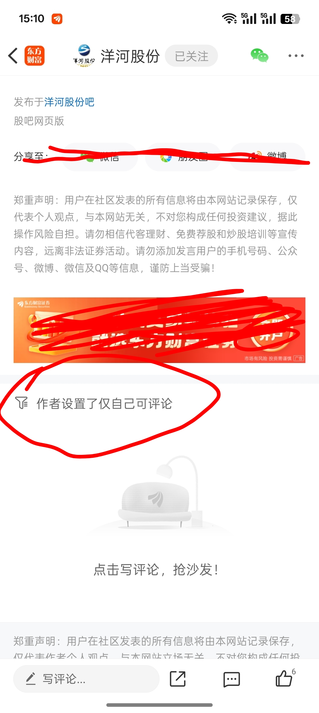 $洋河股份(SZ002304)$ 发个帖子还设置不让评论,