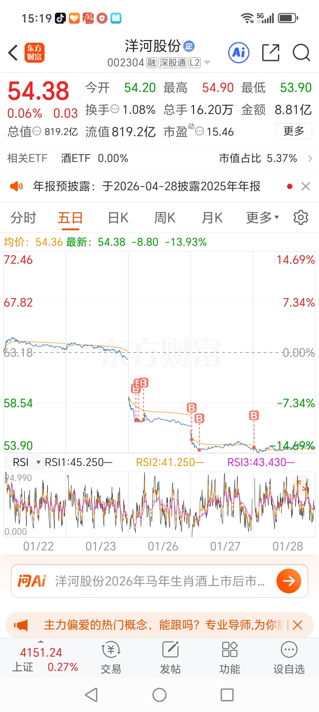 $洋河股份(SZ002304)$ 我有点怕了,明天要不要割肉走了,抄低3天感觉无底洞
