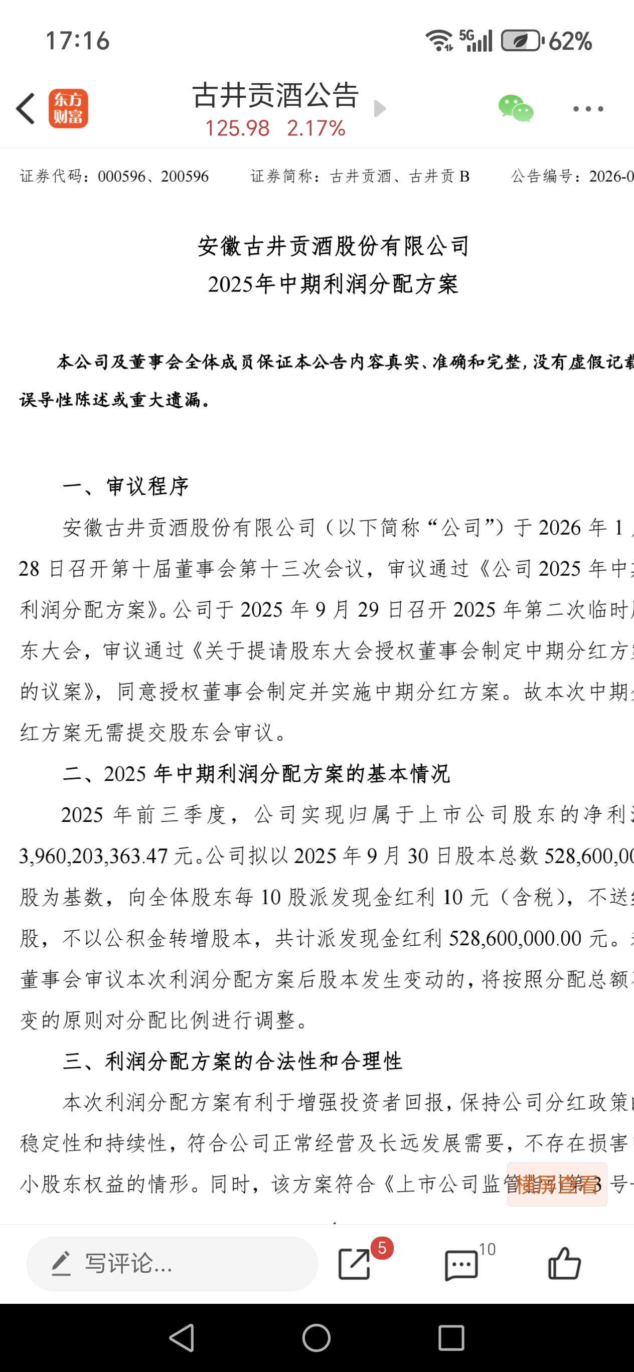 洋河连古井也来打你一巴掌,古井都补发中期分红10派10元!!