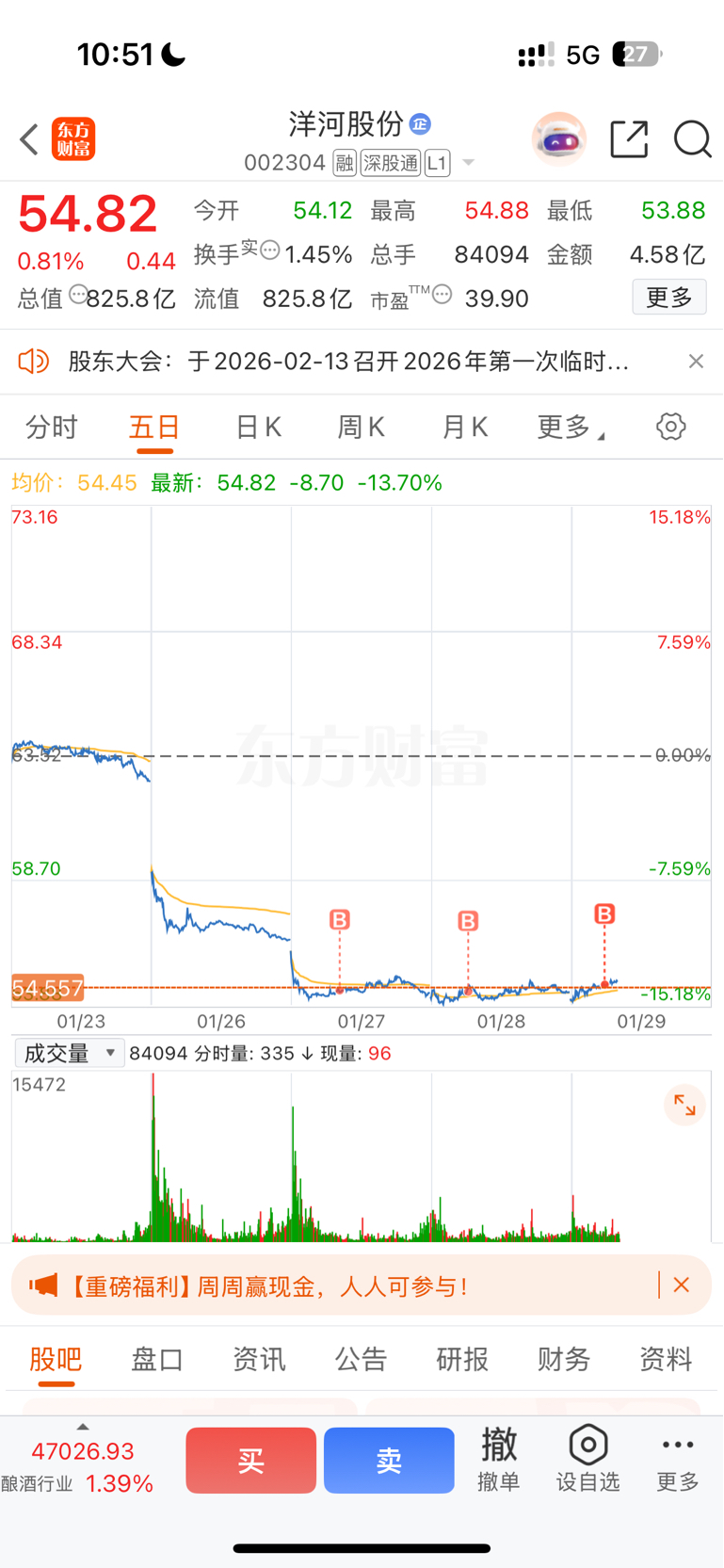 $洋河股份(SZ002304)$ 历史大底部,行情可不能浪费.