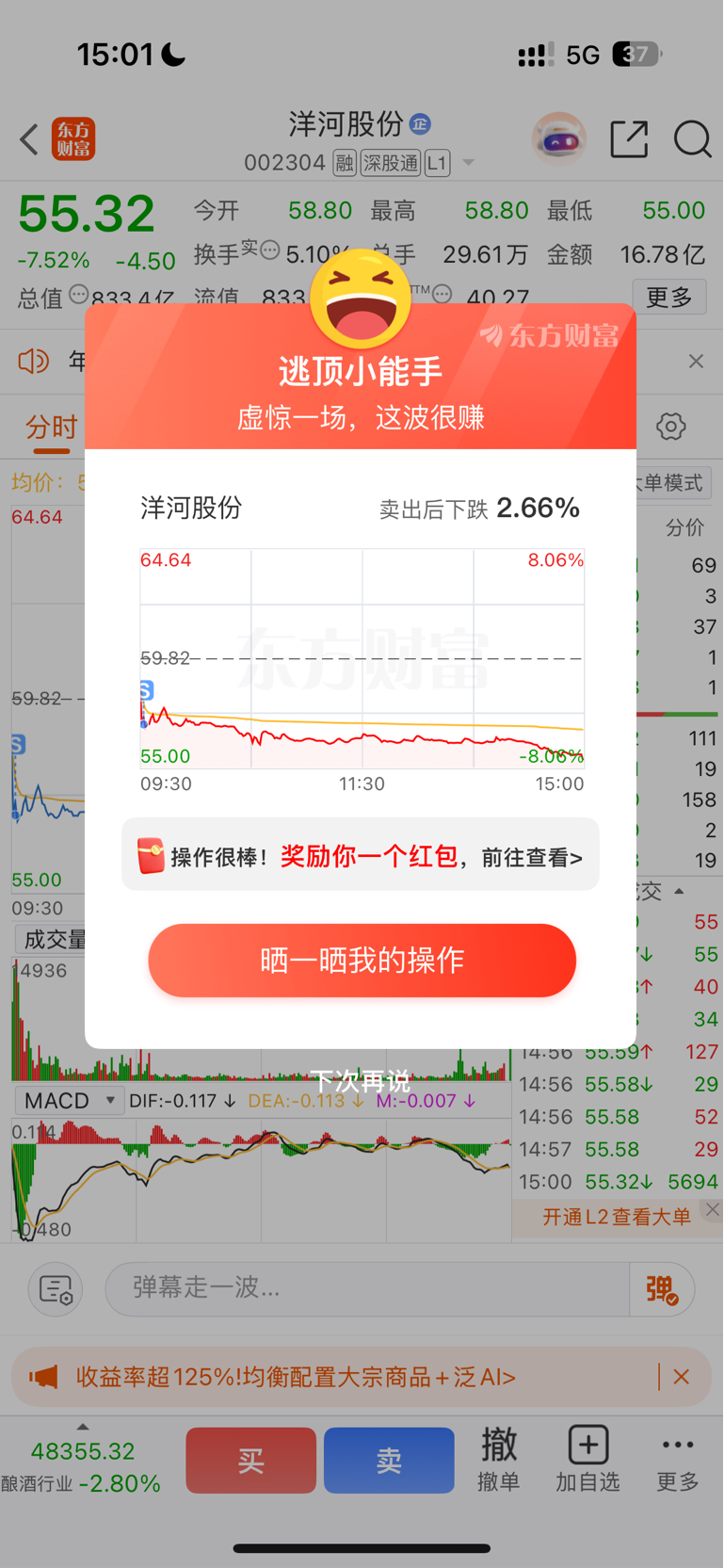 $洋河股份(SZ002304)$ 落袋为安,暂时不碰.