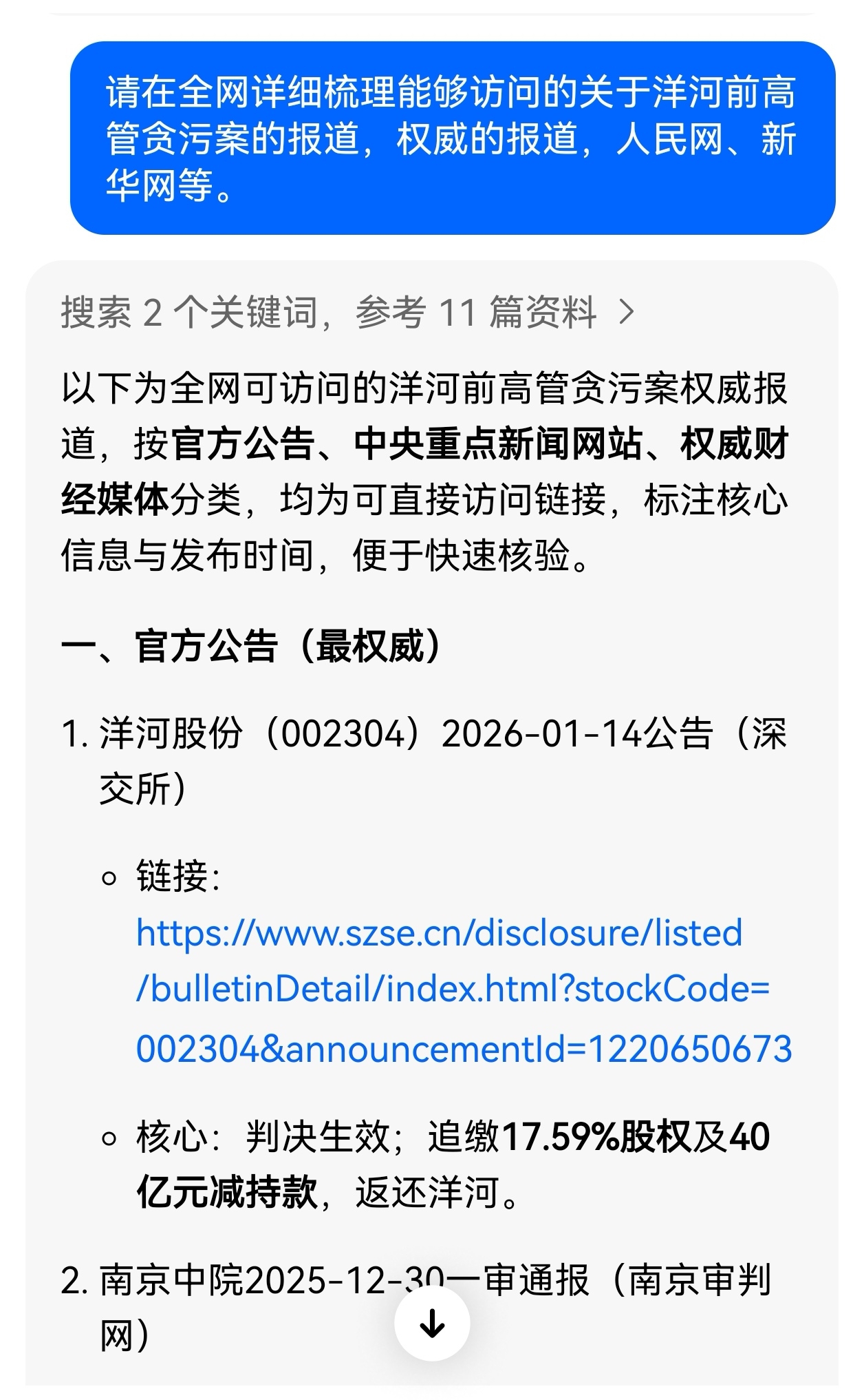 其实1月14日,洋河股份在深交所平台发布了2026年001号公告,但旋即撤回,原因不明,但可以肯定的是判决内容涉重大事项,对公司天大利好!长期不公告,大家可到证监会网站投诉。