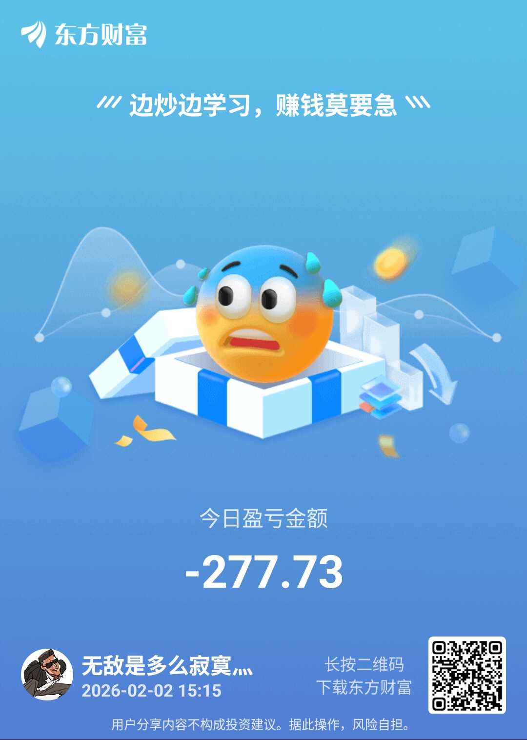 温馨提示: 1.根据《证券法》规定,禁止编造、传播虚假信息或者误导性信息,扰乱证券市场;2.用户在本社区发表的所有资料、言论等仅代表个人观点,与本网站立场无关,不对您构成任何投资建议。用户应基于自己的独立判断,自行决定证券投资并承担相应风险。《东方财富社区管理规定》