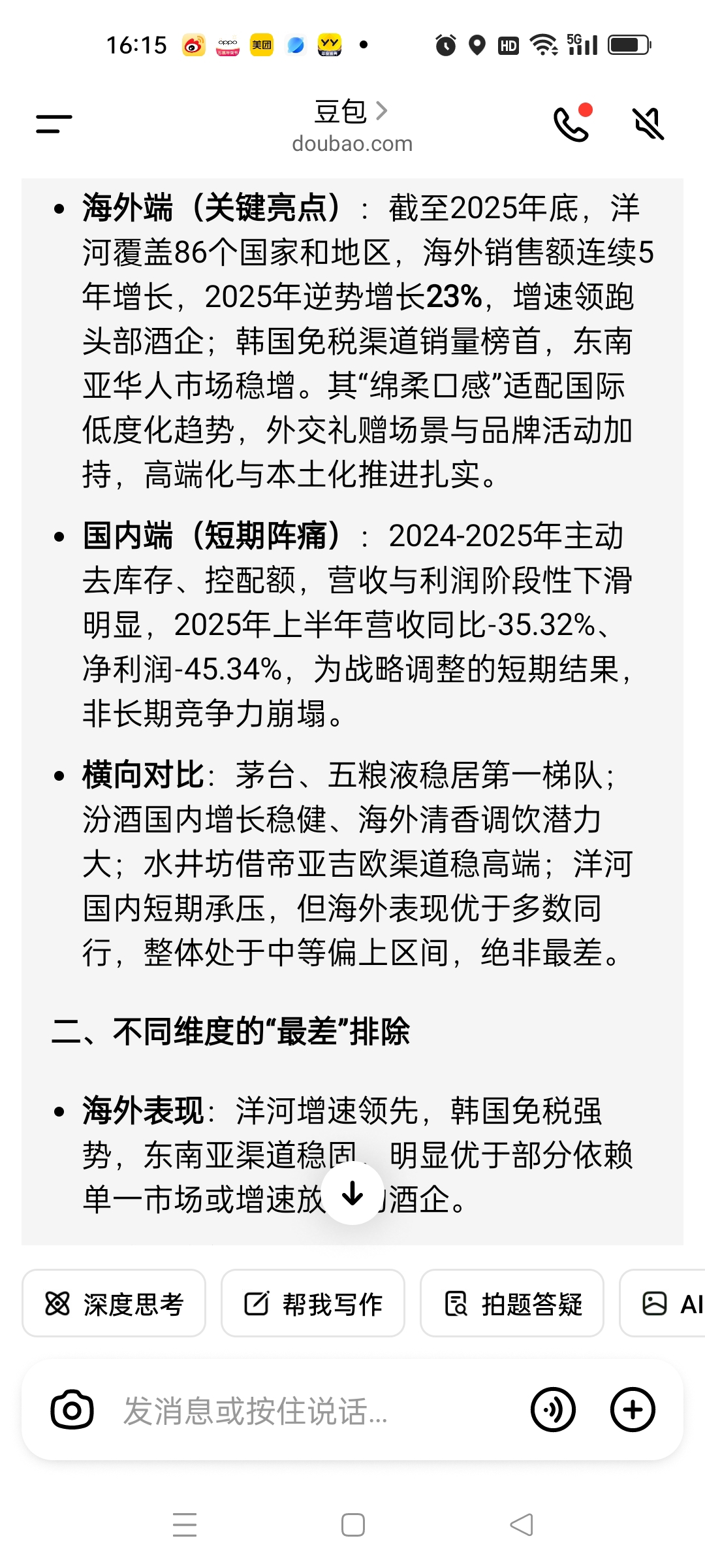 我买洋河股票,是觉得它酒瓶挺好看的,然后就买了,另外它在海外增长率比茅台还快,至