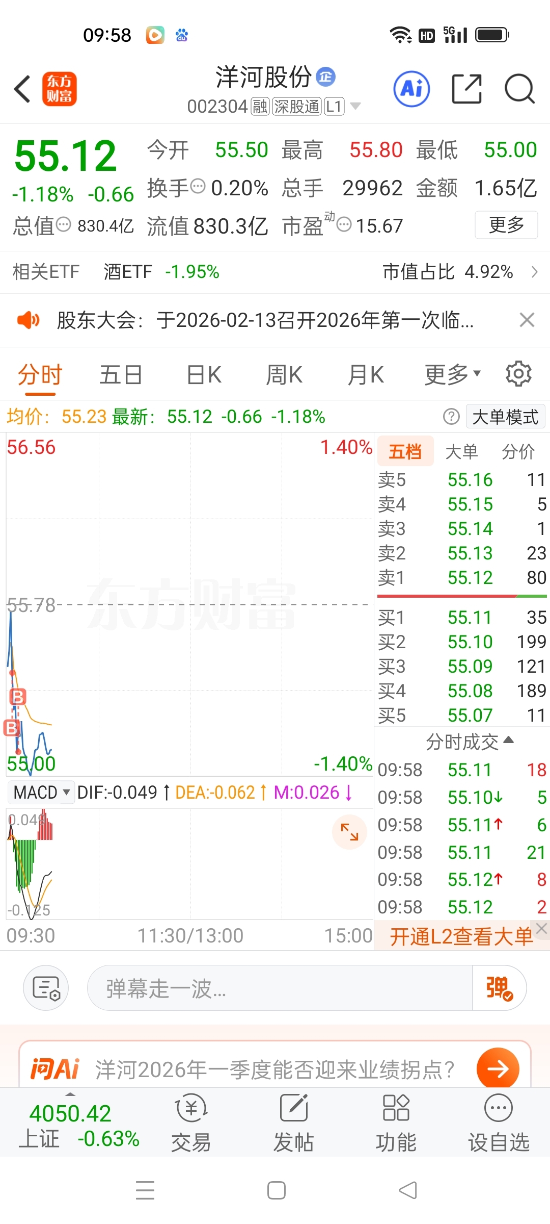 $洋河股份(SZ002304)$ 一卖一减仓就往上拉,今天加仓看看,结果不拉了,主力还是有轨的。