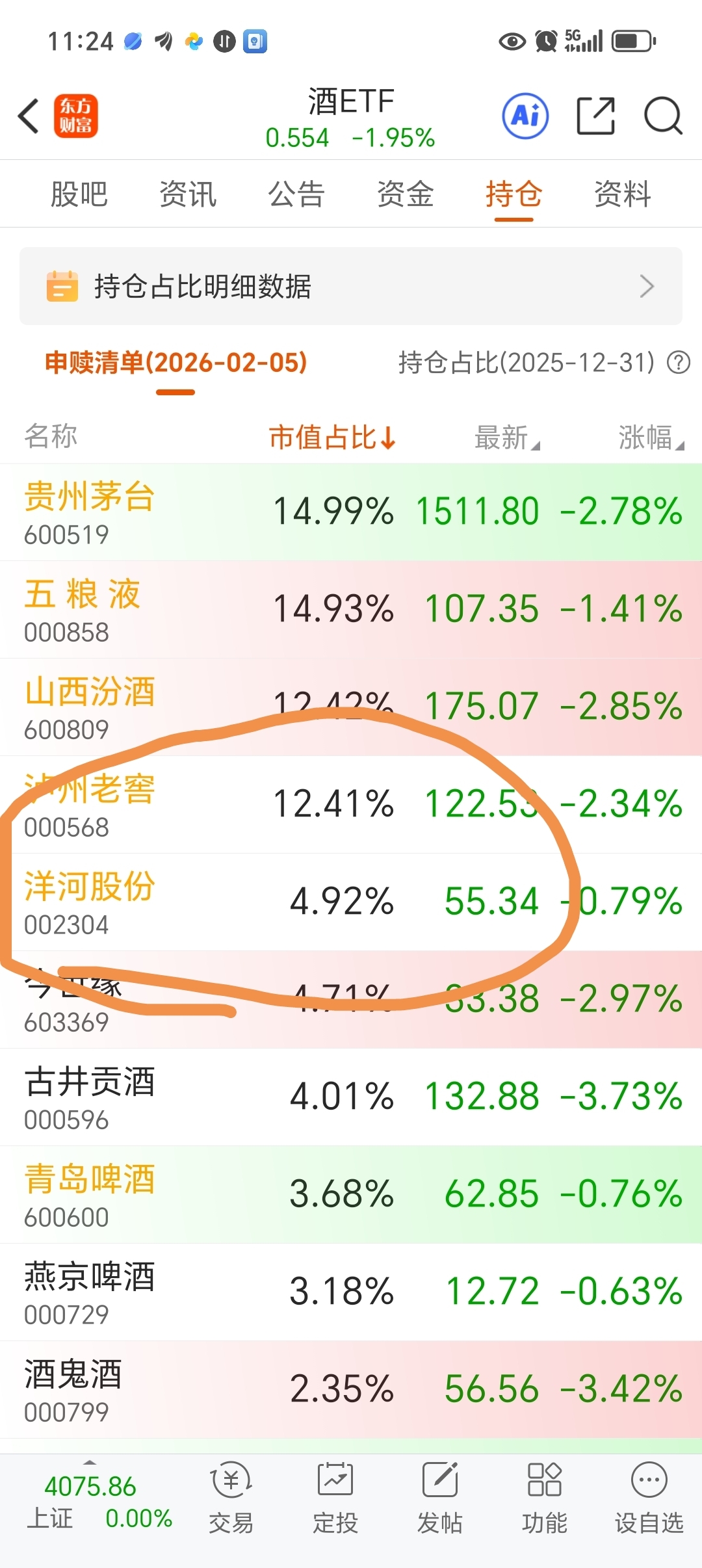 $洋河股份(SZ002304)$ 6%就这货5.4低价卖洋河,收不回来筹码了,现在4.9了,一直砸