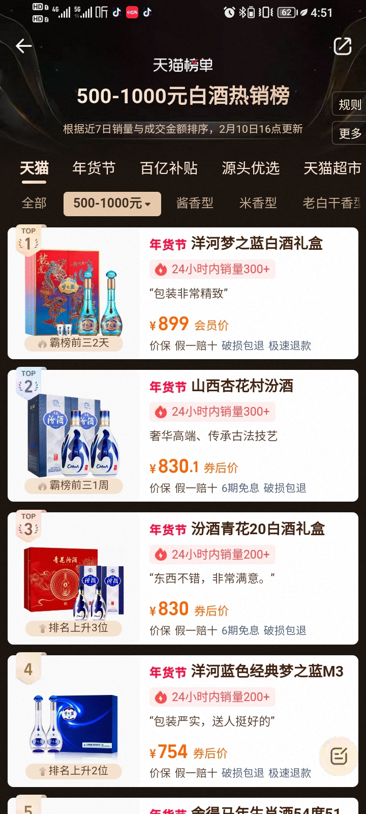 洋河五百到一千淘宝第一名,千元以上茅台第一。可见洋河的护城河并没有消失