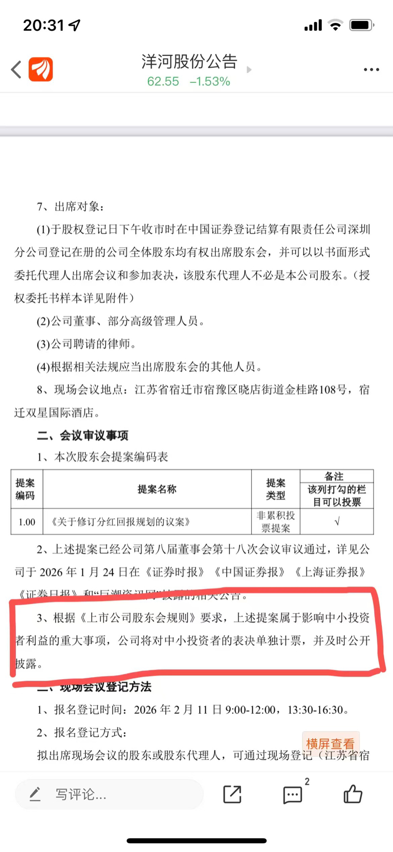 $洋河股份(SZ002304)$ 只有积极投反对票,才有可能改变结果。因为会对中小投资者的投票单独计票,中小投资者反对比例高会引发监管关注,公司才可能调整方案。大家不要放弃为小股东争取更多利益的机会!