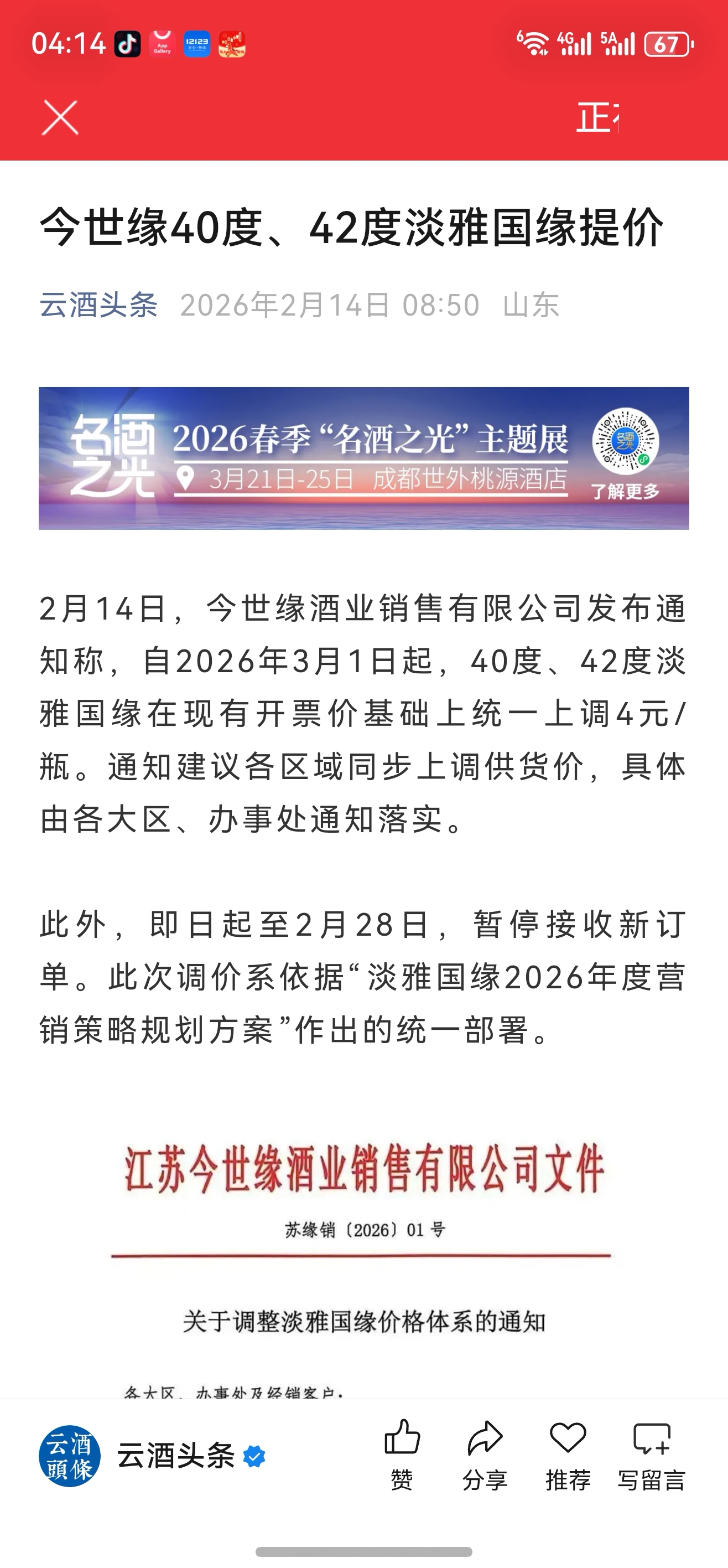 $洋河股份(SZ002304)$ 今世缘都涨价了,元芳这个你咋看?