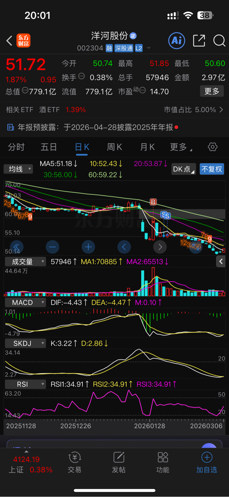 $洋河股份(SZ002304)$ 还好前段时间割肉了,这股太吓人了。。在这里坚持的都图什么呢?随便换一个趋势向上的票减持也比这个有前途