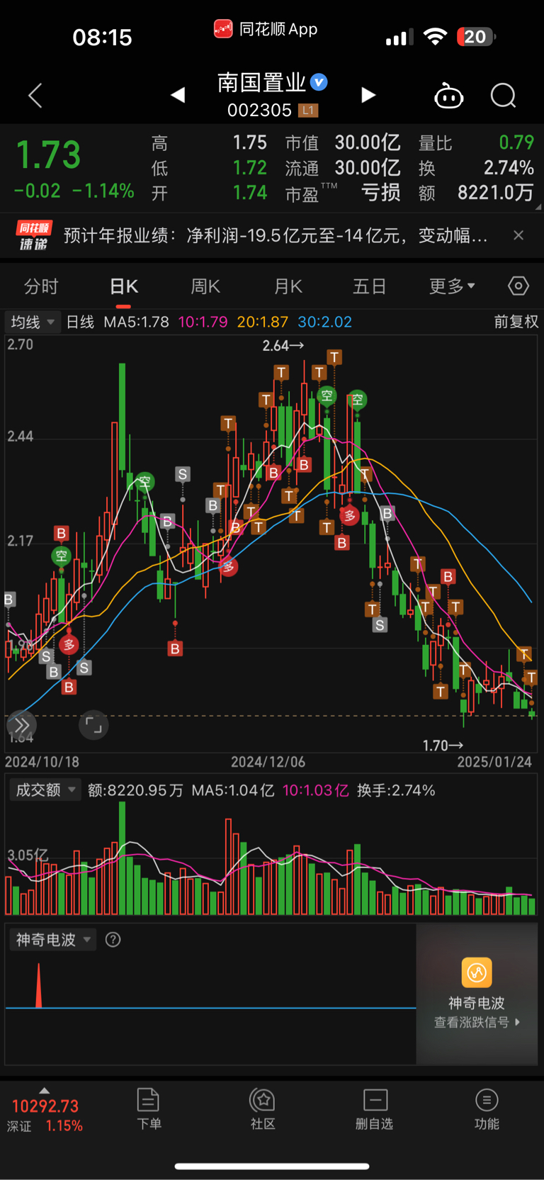 $南国置业(SZ002305)$ 关于南国我想说的是 永远涨不过板块,板块风吹草动立马快速下跌,板块平均六七支涨停不到五个点,即使当天涨停后想格局一下,第二天立马跌停或者跌八个点,此后连续出货回调,目前南国还有十万股,就是这么一只无限虐杀我的南国,所有人都觉得他不行,但我依然心存幻想,南国能不能站起来一次,为自己正名,为底层的我们这些小散正名,翻身的机会很少,南国别让真诚的人失望